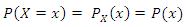 1. The probability of a discrete random variable X taking a specific value x is p(x).