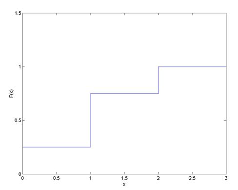 Cumulative distribution function for the data on experiment "tossing the coin twice", given in table 3.2, is plotted in Figure 3.2.