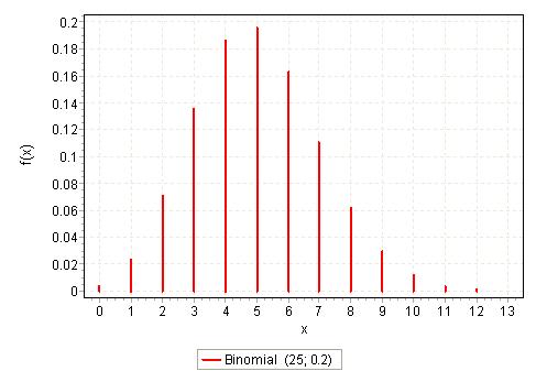 Figure 4.1: Probability mass function of a Binomial random variable with n=25 and p 0.2
