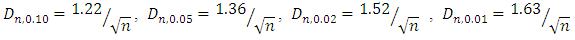 In this case the test statistic is the maximum vertical separation between the theoretical and the observed cumulative distribution functions. If x1, x2,….,xn are the order statistics of a continuous random variable X arranged in the ascending order, the cumulative distribution function is as follows;