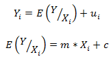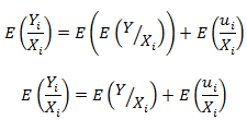 Where, the LHS in the first equation denotes the average value of the dependent variable at a given value of the independent variable. The ui, the value taken by the error term U, is a random variable, and the expectation of this random variable for a given Xi (the conditional expectation) is zero.
