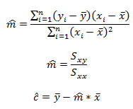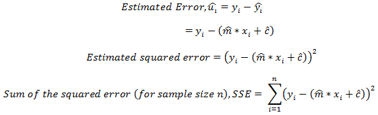 There are different methods available for estimating the parameters m and c used in the above linear regression model. Ordinary least squares method (OLS method) which minimizes the summation of the squared error in Y for different X values, is explained below.