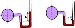 In (Fig : L -8.2), a manometer with two vertical limbs forms a U-shaped measuring tube. A liquid of different density r1 is used as a manometric fluid. We may recall the Pascal's law which states that the pressure on a horizontal plane in a continuous fluid at rest is the same. Applying this equality of pressure at points B and C on the plane gives |