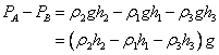 As shown in Fig. : L-8.4, an upright U-tube manometer is connected between points A and B. The difference of pressure between the points may be calculated by balancing pressure in a horizontal plane, the lowest interface A-A is used for this case. |