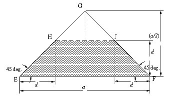 | Water flow in a channel of isosceles triangular cross-section is shown in the following figure for which depth of flow and bed width are |