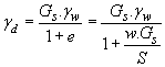 A series of samples of the soil are compacted at different water contents, and a curve is drawn with axes of dry density and water content. The resulting plot usually has a distinct peak as shown. Such inverted “V” curves are obtained for cohesive soils (or soils with fines), and are known as compaction curves. Dry density can be related to water content and degree of saturation (S) as
