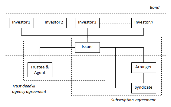 The typical contractual structure of a bond issue involving the key stakeholders is shown below:
