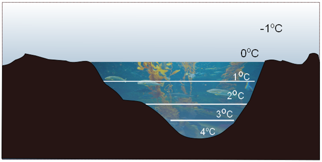 Fig. 2.9. Anamalous expansion of water and its implications on survival of aquatic creatures in the ponds