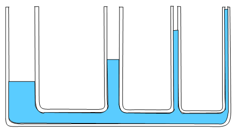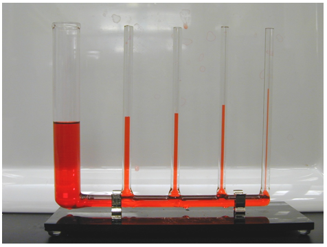 Fig. 3.5. An illustration of capillary rise in tubes containg different diameters