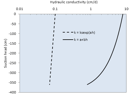 Fig. 5.6b. Assumed hydraulic conductivity functional relationships