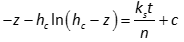 where c is the constant of integration. The constant can be obtained by substituting the initial condition (i.e., t = 0 and z = 0) which is