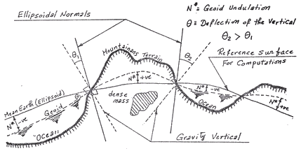 Figure 8.7 Deflection of vertical and Geoidal undulation
