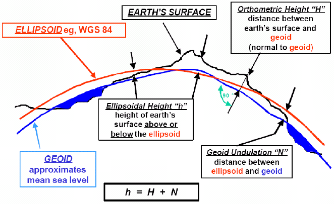 and geoid is called orthometric height (H). The normal distance