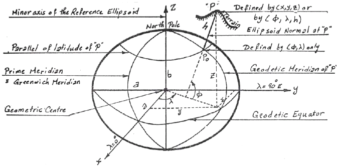 Figure 8.6 A typical elliposidal coordinate system (Nassar,