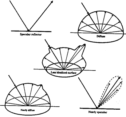 | Reflectance characteristics of idealised surfaces (Schott, 1997)
