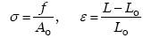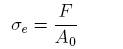 where F is the applied force and A is the (instantaneous) cross sectional area of the specimen. Alternatively, if the initial cross sectional area A0 is used, one obtains the engineering stress