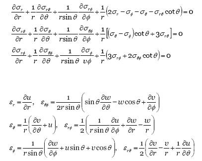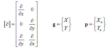 The strain–displacement relationship for an isotropic material can be written in terms of E, and ν is: