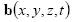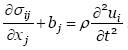 Body force: distributed force per unit volume (e.g., weight, inertia, etc). It is denoted