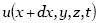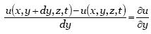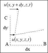 . In the reference configuration, the two particles are distance dx apart. At a given time coordinate t, the two particles move to new places. The x -component of dy the displacement of particle A is