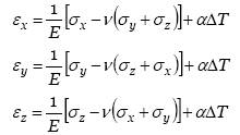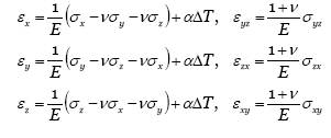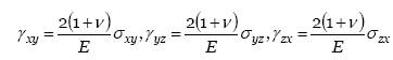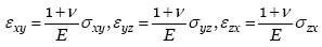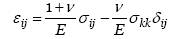 Inverting the matrix, we express the strain components in terms of the stress components:
