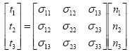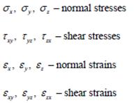 We list the six components of stress as a column, and list the six components of strain as another column, so that the six stress-strain relations take the form
