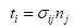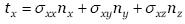 . The force per area on the plane is called the traction. The traction is a vector, with three components: