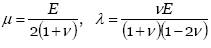 We consider homogeneous and isotropic material. For homogeneous material, the properties are the same at any point of the body. For an isotropic material, the properties are the same in any direction. There are two independent elastic constants using the symmetry of an isotropic material. The isotropic constants are: