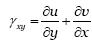 The shear strain is defined as follows. Consider two lines of material particles. In the reference configuration, the two lines are perpendicular to each other. The deformation changes the included angle by some amount. This change in the angle defines the shear strain, γ . We now translate this definition into a strain-displacement relation. Consider three material particles A, B, and C. In the reference configuration, their coordinates are