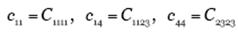 For a crystal of cubic symmetry, such as silicon and germanium, when the coordinates are along the cube edges, the stress-strain relations are
