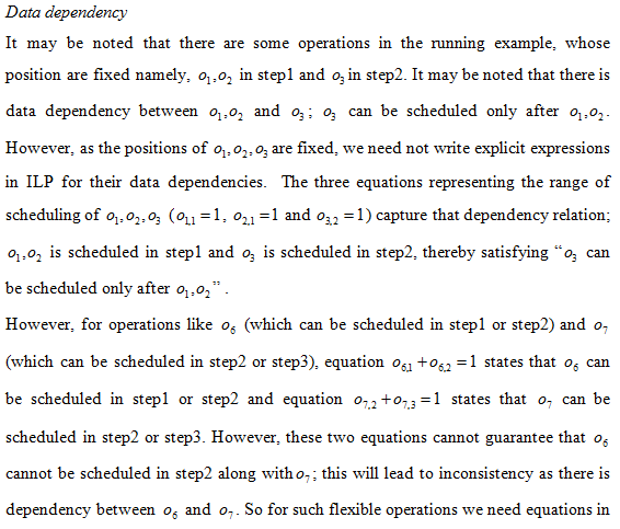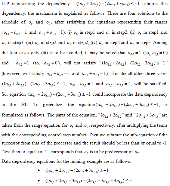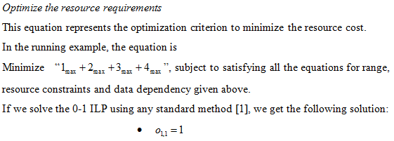 It may be noted that this solution corresponds to the schedule shown in Figure 3 (and Figure 7); it can also be determined that this schedule is most optimal in terms of resource requirements if time step constraint is 4.