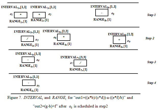 Unlike ASAP, ALAP or FDS scheduling, which process operations individually in a fixed order, list scheduling handles each control step individually (in increasing order). List scheduling works by trying to schedule “maximum” number of operations in the control step, subject to resource constraints and data dependency. During the scheduling process, list scheduling uses a ready list (hence the name) to keep track of data-ready operations subject to data dependency. The ready list in a control step comprises those unscheduled operations that can be scheduled into the current control step without violating the data dependency (i.e., those operations whose immediate predecessors have been scheduled into earlier control steps). As long as there are operations in the ready list that meet the resource constraints, operations are chosen from that list and scheduled into the current control step. If more than one operation from ready list can be scheduled in a control step, but violates resource constraints, then choice among the ready operations is made by a priority function. One common priority function is “ALAPi - ASAPi ” (i.e., range where the operation can be scheduled). Operations with smaller ranges (i.e., smaller mobility) are given higher priority, since there are fewer possible control steps into which those operations can be scheduled, and since delaying them to a later control step would more likely increase the overall length of the schedule.