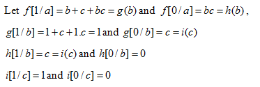or instance, for the above considered example (i.e.,f(a)=ac+bc+ab) the initial diagram would be of the form shown in Figure 13.
