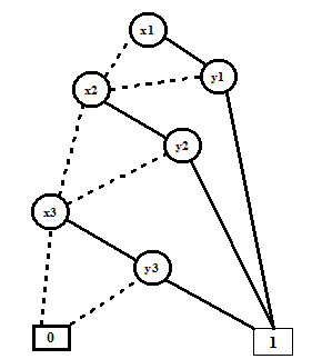 Figure 8. ROBDD for f = x1.y1 + x2.y3 + x3.y3