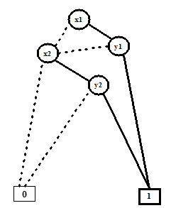 Now we illustrate exists algorithm on the OBDD f shown in Figure 8. Applying + over above two calculated restricts (Figure 10 and Figure 11), gives the OBDD for
