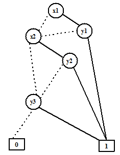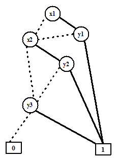 After applying restrict (1, x3 , Bf ), f becomes, f [1/x3] = x1.y1 + x2.y3 + y3. The final ROBDD after restrict