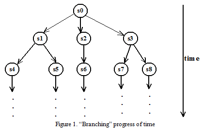A branching-time temporal logic represents time as a tree, rooted at the present instance of time and branching out into the future. The time is visualized as branching in nature which has many future possibilities but at any instant of time it will take one particular future direction depending on system behavior. Figure 1 shows the “branching” progress of time in different possible “branches” in future.