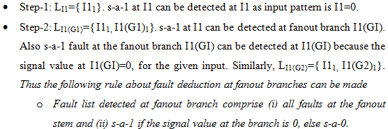>> we will see the fault deductions at the various nets if I1=1. This situation is illustrated in Figure 12.