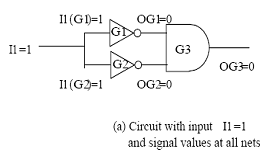 Figure 12. Example of deductive fault simulation with input I1=1