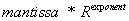 In this representation, numbers are represented by a mantissa comprising the significant digits and an exponent part of Radix R. The format is: