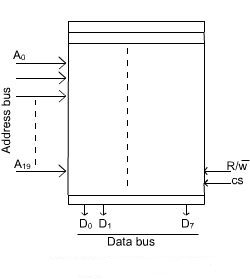 memory cells. It has got 220 memory location and each memory location contains 8 bits information. The size of address bus is 20 and the size of data bus is 8.