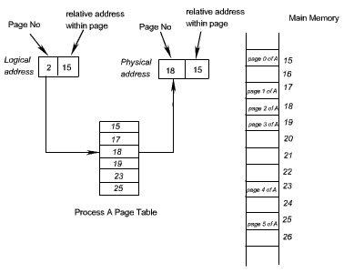 The conversion of logical address to physical address is shown in the figure for the Process A.