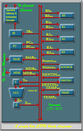 The single bus architecture of CPU is shown in the Figure 5.19.