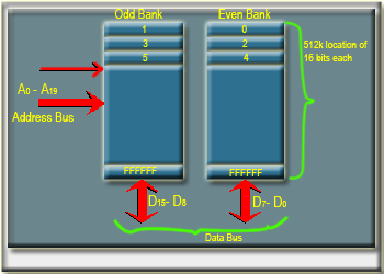 In an 8086 based system, the 1Mbyte memory is physically organized as odd bank and even bank, each of 512kbytes, addressed in parallel by the processor.