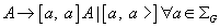 N = { S, A, [a, X], [a,<X], [a, X>], [a, <X>], [a, qX], [a, q<X], [a, <qX], [a, qX>], [a, Xq > ], [a, Xq>], [a, qX>], [a, Xq>], [a, q<X>], [a, <qx>],[a, <Xq>] }