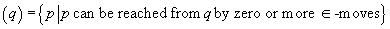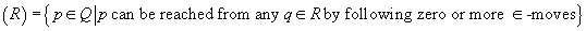 The concept used in the above construction can be made more formal by defining the -closure for a state (or a set of states). The idea of -closure is that, when moving from a state p to a state q (or from a set of states Si to a set of states Sj ) an input , we need to take account of all -moves that could be made after the transition. Formally, for a given state q,