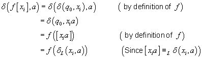 This satisfies the third condition of the definition, thus proving that and M are isomorphic. This also completes the prove that is the minimal state DFA for L since, now, , ( i.e. the number of state Q in any arbitrary DFA M accepting the language L must be greater than or equal to the number of states of the DFA that has as states the equivalence classes of . )