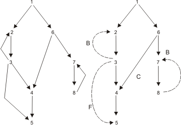 - Cross edges: connects nodes such that neither is an ancestor in dfs