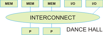 - Interconnect could be a crossbar switch so that any processor can talk to any memory bank in one “hop” (provides latency and bandwidth advantages)