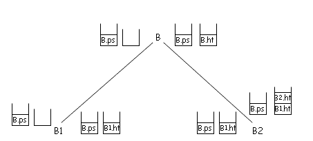 The space used can be reduced by using different stacks for synthesized and inherited attributes. In the above example, if we use such a scheme, then less space is used by the two stacks as a whole. Now B.ps need not be pushed on to the stack for the inherited attribute of B1 and B2 since it is on the top of the synthesized attribute stack, and can be directly accessed from this stack.