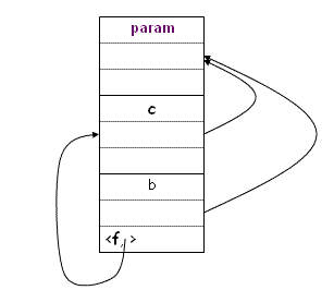 Actual procedure parameter f carries its access link along as described earlier.